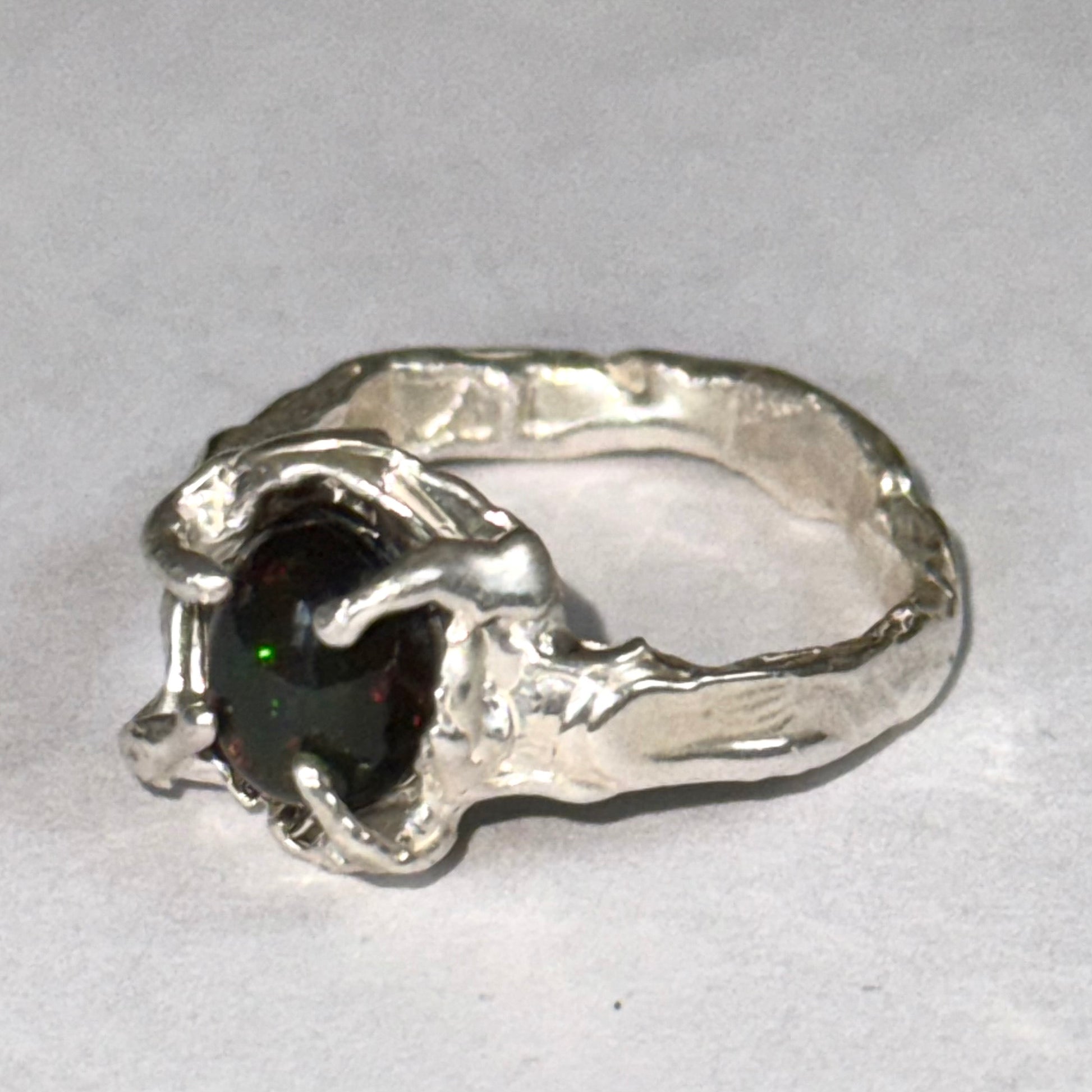 Sterling Silver + Black Ethiopian Opal. Size 7.