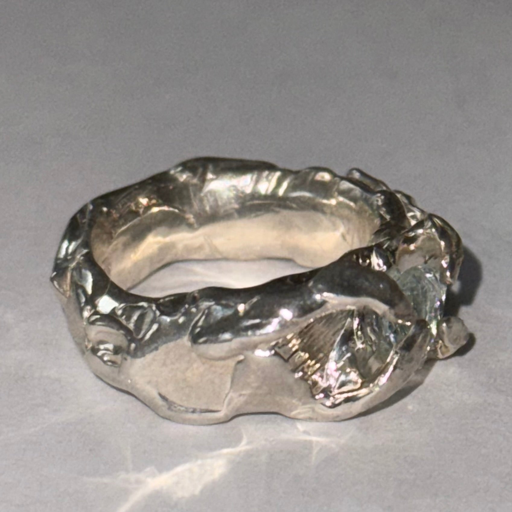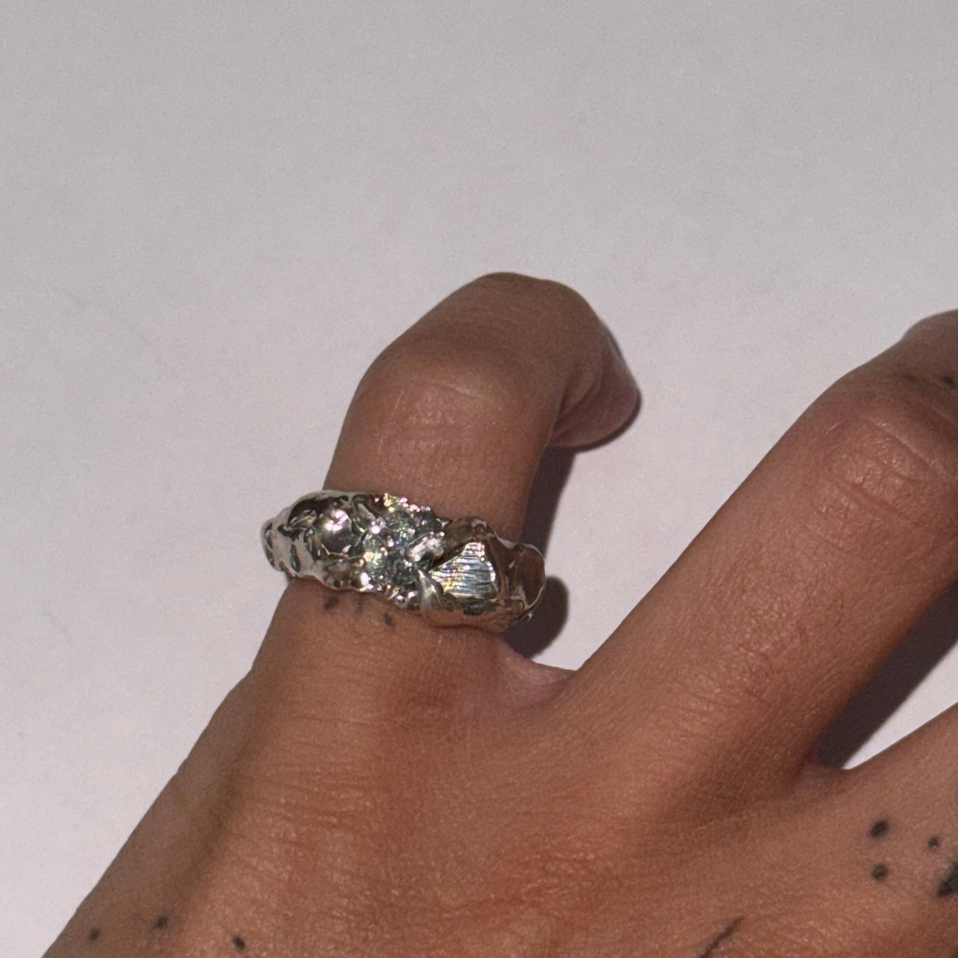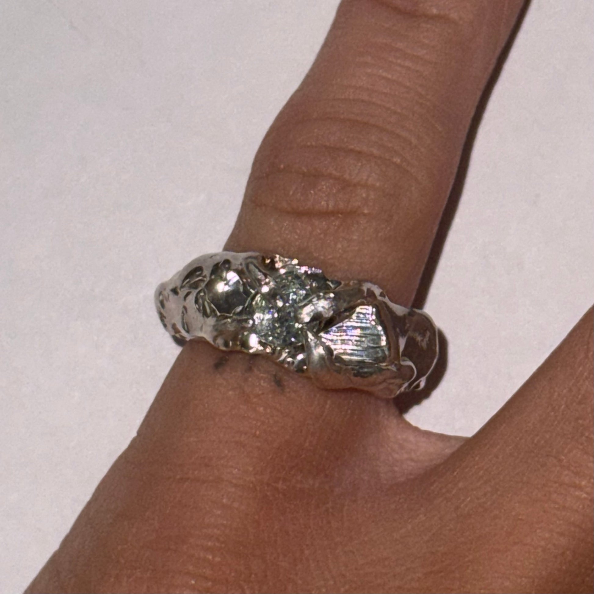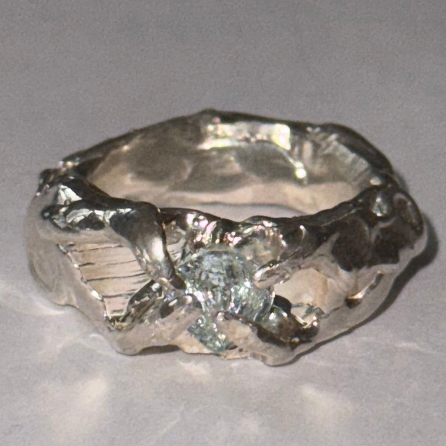 925 Sterling Silver. Aquamarine Encrusted. Size 4